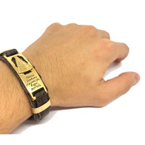 Pulseira de Couro de Arraia Preta - Jesus é o Caminho GOLD