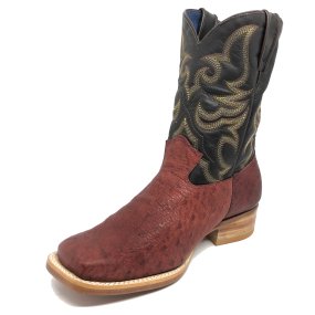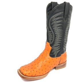 Bota de Avestruz Cheio Black Cognac - Cano Alto, Bico Quadrado