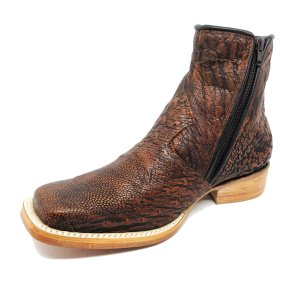Bota de Avestruz Cheio BloodWine - Cano Alto, Bico Quadrado, SOLADO X-FLEX ARTESANAL