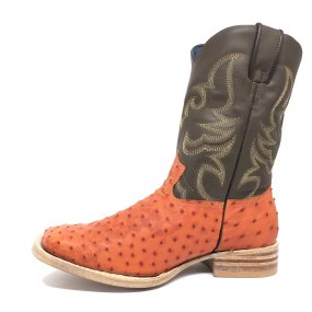 Bota de Avestruz Cheio Conhaque - Cano Alto, Bico Fino, Solado de Couro Artesanal