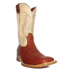 Bota de Avestruz Cheio Conhaque - Cano Alto, Bico Quadrado, Solado de Couro Artesanal