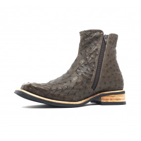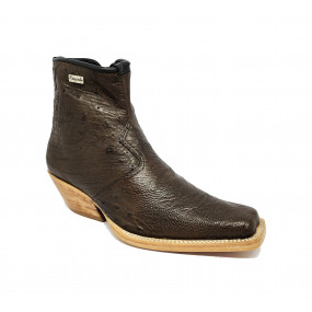 Bota de Avestruz Cheio Conhaque - Cano Alto, Bico Quadrado, Solado Flex Comfort