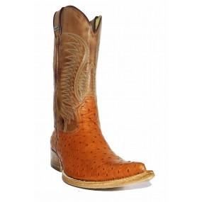 Bota de Avestruz Cheio Conhaque - Cano Alto, Bico Quadrado, Solado X-FLEX Artesanal