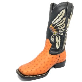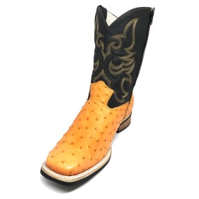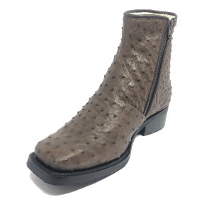 Bota de Avestruz Cheio Conhaque - Cano Médio, Bico Quadrado, Solado Flex Comfort