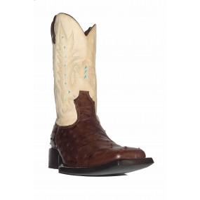 Bota de Avestruz Cheio Conhaque - Cano Médio, Bico Redondo, SOLADO X-FLEX ARTESANAL