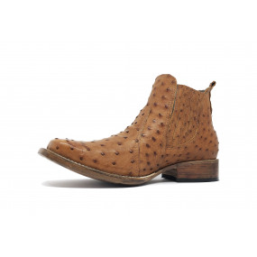 Bota de Avestruz Cheio Laranja - Cano Curto, Bico Quadrado, Solado Flex Comfort
