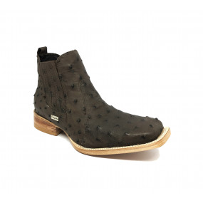 Bota de Avestruz Cheio Laranja - Cano Médio, Bico Quadrado, SOLADO X-FLEX ARTESANAL
