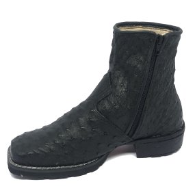 Bota de Avestruz Cheio Laranja - Cano Médio, Bico Quadrado, Solado X-FLEX Artesanal