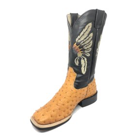 Bota de Avestruz Cheio Marrom - Cano Alto, Bico Quadrado, Solado Flex Comfort