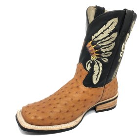 Bota de Avestruz Cheio Marrom - Cano Curto, Bico Quadrado, Solado de Couro Artesanal