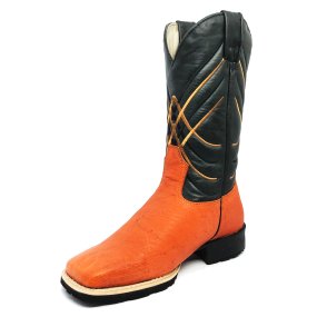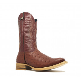 Bota de Avestruz Cheio Marrom - Cano Curto, Bico Quadrado, Solado X-Flex Artesanal