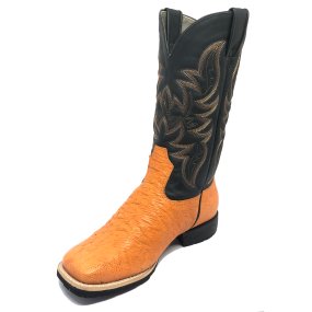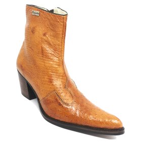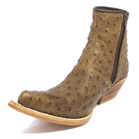 Bota de Avestruz Cheio Pinhão - Cano Curto, Bico Quadrado