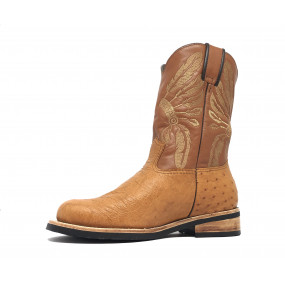 Bota de Barriga Avestruz Marrom - Cano Alto, Bico Quadrado, Solado Flex Comfort