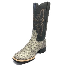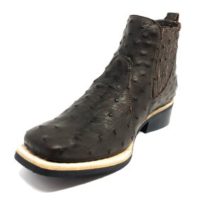 Bota de Barriga de Avestruz Black Cognac - Cano Curto, Bico Fino Arredondado