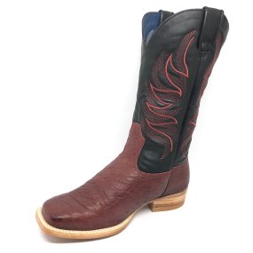 Bota de Barriga de Avestruz BloodWine- Cano Curto, Bico Fino Quadradinho, Solado de Couro Artesanal