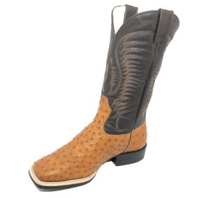 Bota de Barriga de Avestruz Conhaque - Cano Médio, Bico Quadrado Clássico