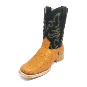 Bota de Barriga de Avestruz Marrom - Cano Alto, Bico Quadrado, SOLADO X-FLEX ARTESANAL