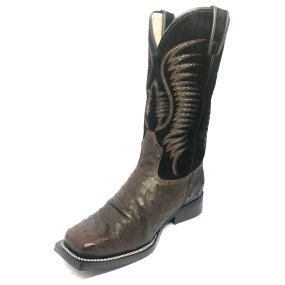 Bota de Barriga de Avestruz Preta - Cano Alto, Bico Quadrado