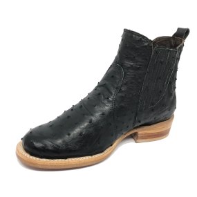 Bota de Barriga de Avestruz Preta - Cano Curto, Bico Fino Arredondado