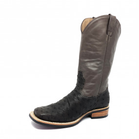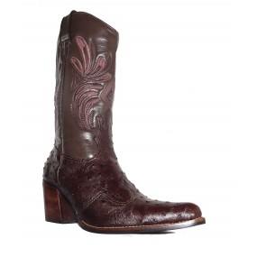Bota De Couro De Avestruz Cheio BloodWine - CANO ALTO, BICO QUADRADO, SOLADO DE COURO ARTESANAL