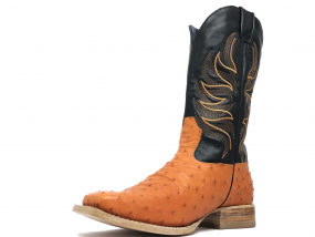 Bota de Couro de Avestruz Cheio Conhaque - Cano Alto, Bico Quadrado, Solado Flex Comfort