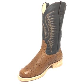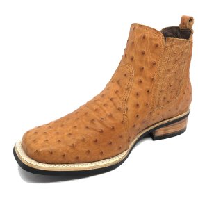 Bota de Couro de Avestruz Cheio Conhaque - Cano Alto, Bico Quadrado, Solado Flex Comfort