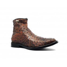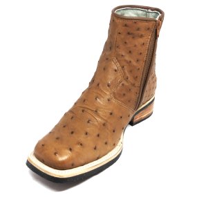 Bota de Couro de Avestruz Cheio Conhaque - Cano Alto, Bico Quadrado, Solado Flex Comfort