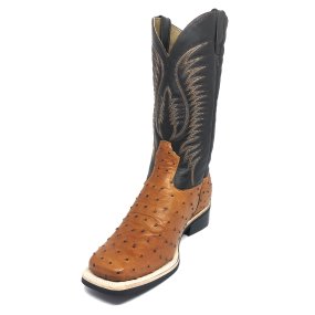 Bota de Couro de Avestruz Cheio Conhaque - Cano Curto, Bico Fino, SOLADO DE COURO ARTESANAL