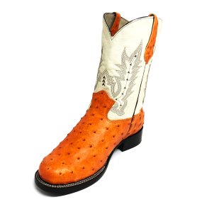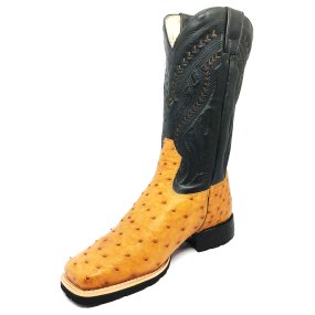 Bota de Couro de Avestruz Cheio Conhaque - Cano Médio, Bico Quadrado, SOLADO DE COURO ARTESANAL