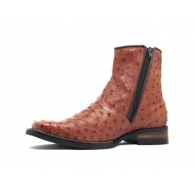 Bota de Couro de Avestruz Cheio Laranja - Cano Alto, Bico Quadrado, Solado Flex Comfort