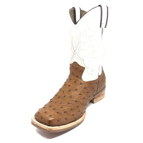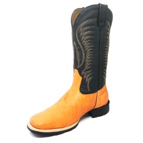 Bota de Couro de Avestruz Cheio Laranja - Cano Alto, Bico Quadrado, SOLADO X-FLEX ARTESANAL