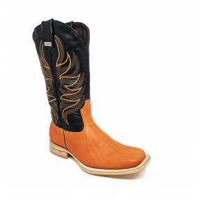 Tem o salto feito em couro com capa de borracha e acabamento colado e pregado com a sola de borracha e soleta de couro costurada e ponteada na frente. É um solado firme, mais macio e mais flexível que o de couro que também é extremamente duradouro.