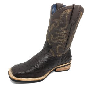 Bota de Couro de Avestruz Cheio Marrom Tabaco - Cano Curto de Zíper, Bico Quadrado, Solado de Couro Artesanal