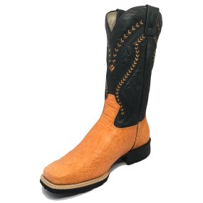 Bota de Couro de Avestruz Cheio Preto - Cano Alto, Bico Quadrado, Solado S-Flex Artesanal