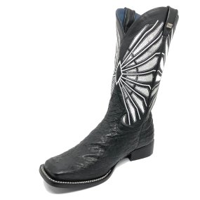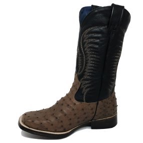 Bota de Couro de Avestruz Cheio Preto Dry - Cano Curto, Bico Quadrado, SOLADO X-FLEX ARTESANAL