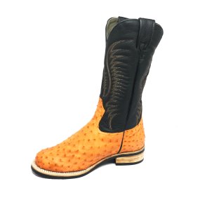 Bota de Couro de Barriga de Avestruz Laranja - Cano Alto, Bico Quadrado, Solado Flex Comfort