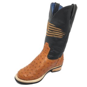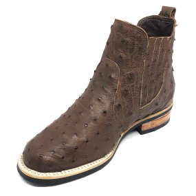 Bota de Couro de Barriga de Avestruz Marrom Café - Cano Alto, Bico Quadrado, SOLADO X-FLEX ARTESANAL