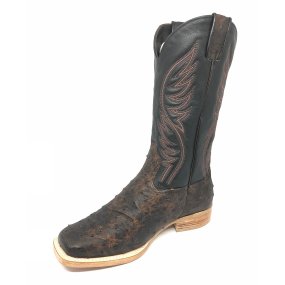 Bota de Couro de Barriga de Avestruz Preta - Cano Médio, Bico Quadrado, Solado Flex Comfort