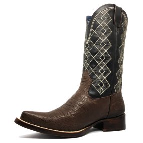 O bico fino inclinado é outro destaque desta bota, subindo quatro dedos do chão, conferindo um toque moderno e ousado ao design tradicional. Diferente do bico fino normal, essa inclinação elevada traz uma silhueta mais arrojada e impactante, ideal para quem busca se destacar em qualquer ocasião.