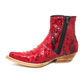 Bota de Cobra Python Preta - Cano Curto, Bico Fino Quadradinho, Solado de Couro Artesanal