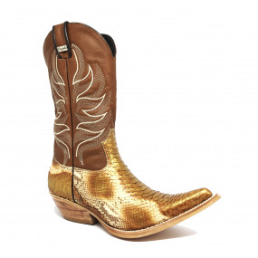 Bota de Couro de Cobra Python Girassol - Cano Alto, Bico Fino Inclinado, SOLADO DE COURO ARTESANAL