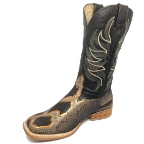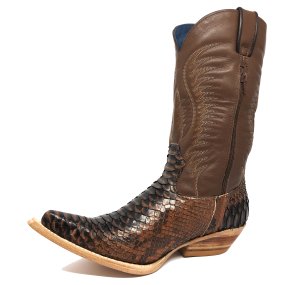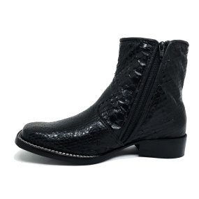 Bota de Couro de Cobra Python Insepia - Cano Curto, Bico Fino Inclinado, SOLADO DE COURO ARTESANAL