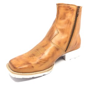 Bota de Couro Bovino Amarelo Látego - Cano Alto, Bico Quadrado, Solado Flex Comfort