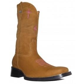 Bota de Couro Bovino Bufalada Caramelo - Cano Médio, Bico Quadrado, Solado Flex Comfort