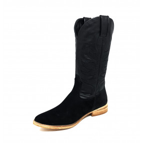 Bota Bufalada Preta - Cano Alto, Bico Quadrado, SOLADO X-FLEX ARTESANAL