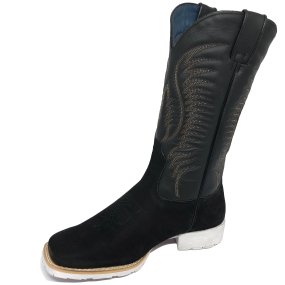 Bota de Couro Bovino Bufalado Preto - Cano Médio, Bico Quadrado, Solado Flex Comfort