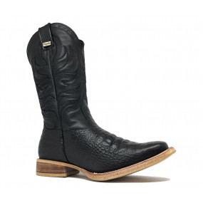 Bota Bovino de Imitação de Avestruz Preto