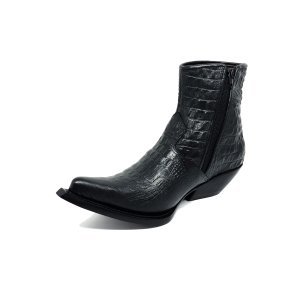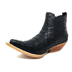 Bota de Couro Bovino Imitação de Cobra Cascavel - Cano Curto, Bico Fino