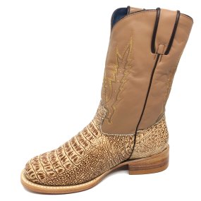 Bota De Couro Bovino Imitação De Cobra Eagle - Cano Alto, Bico Quadrado, Solado de Couro Artesanal