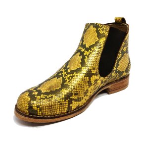 Tem o salto feito em couro com capa de borracha e acabamento colado e pregado com a sola e soleta de couro costurada e ponteada na frente.